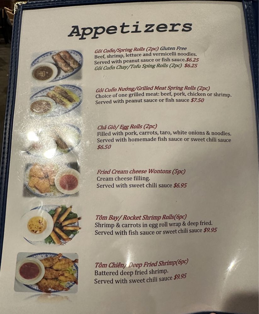 Filled with pork, carrots, white onions noodles. Served with homemade fish sauce